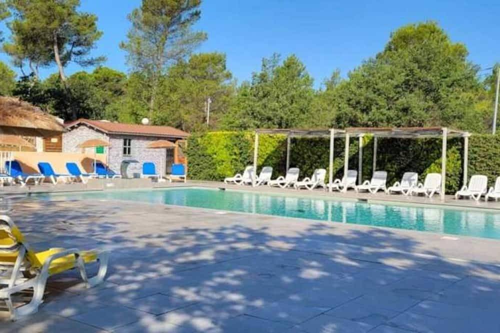 traditioneel Provençaals dorp oproept. De chalets en stacaravans zijn